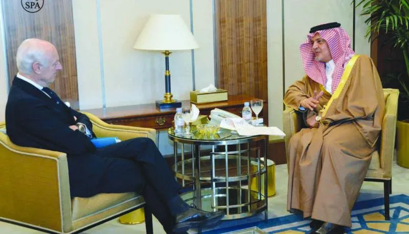 الأمير سعود الفيصل خلال مباحثاته مع المبعوث الخاص للأمين العام للأمم المتحدة لسوريا ستيفان دي مستورا (واس)