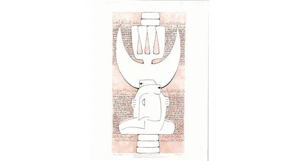 أبعاد هذا العمل 100 × 70 سم وهو منفّذ بالطباعة الحريرية على الورق أسوة ببقية الأعمال المعروضة.