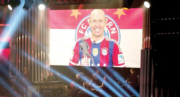 الشاشة العملاقة لملعب بايرن ميونيخ احتفلت بنجم الفريق آريين روبن الذي اختير لاعب العام في هولندا (أ.ف.ب)