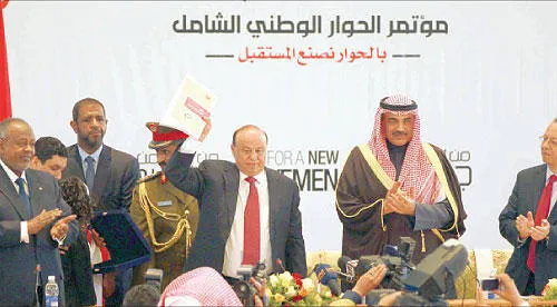 طوى اليمن أمس السبت في صنعاء المرحلة الثانية من عملية نقل السلطة، باختتام مؤتمر الحوار الوطني الشامل، بحفل نظمه الرئيس اليمني عبد ربه منصور هادي، حضرته شخصيات من دول مجلس التعاون الخليجي والجامعة العربية والمجتمع الدولي.