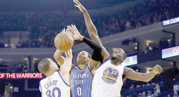 جانب من مباراة غولدن ستيت واريورز وأوكلاهوما سيتي (أ.ف.ب)