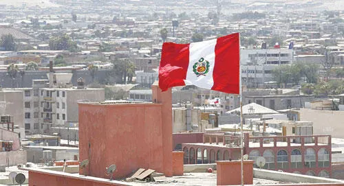 علم بيروفي يرفرف فوق سفارة بيرو في مدينة أريكا بشمال تشيلي قرب الحدود مع بيرو أمس (إ.ب.أ)