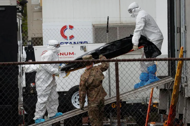 نقل جثمان أحد ضحايا «كورونا» في ولاية نيوجيرزي الأميركية (أرشيفية-رويترز)