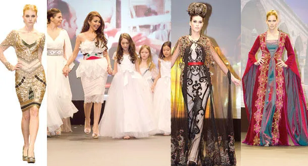 أبهرت منال عجاج الحضور بتصميماتها في عرضها ببرلين - من تصميم منال عجاج في عرضها ببرلين - .. وتتوسط العارضات الصغيرات - من تصميم منال عجاج