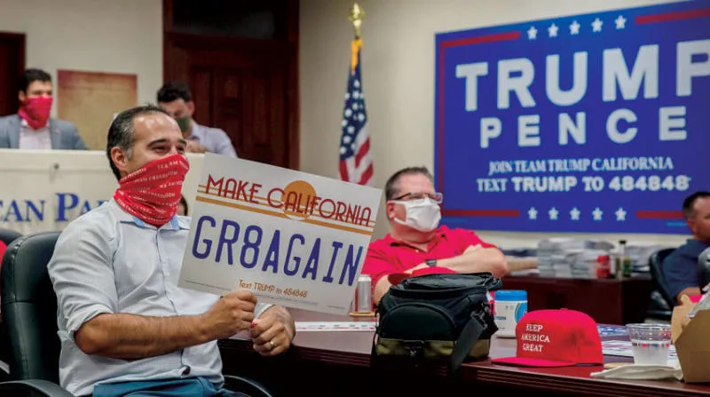 أنصار للرئيس ترمب يتابعون خطابه من كاليفورنيا مساء الخميس (أ.ف.ب)