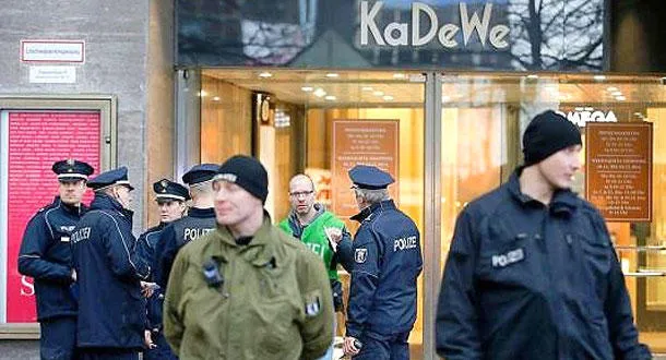 وقالت الشرطة إن الجناة دخلوا عبر بوابة جانبية إلى المتجر الذي يحظى بشعبية والقريب من شارع كورفورستن دام التجاري، مشيرة إلى أنه تم إخلاء المتجر في أعقاب الحادث وإغلاقه بصورة مؤقتة.
