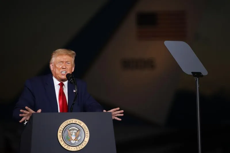 الرئيس الأميركي دونالد ترمب يلقي كلمة لأنصاره في ولاية نيوهامبشير (أ.ف.ب)
