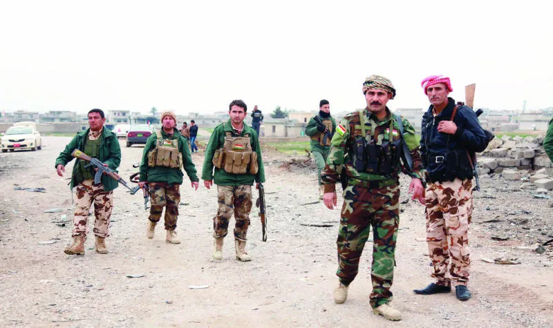 عناصر في البيشمركة ينتشرون في ناحية زمار غرب الموصل (رويترز)