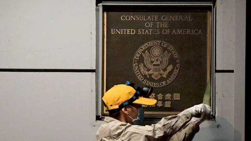 إغلاق القنصلية الأميركية في مقاطعة سيشوان الصينية يوليو الماضي (أ.ف.ب)