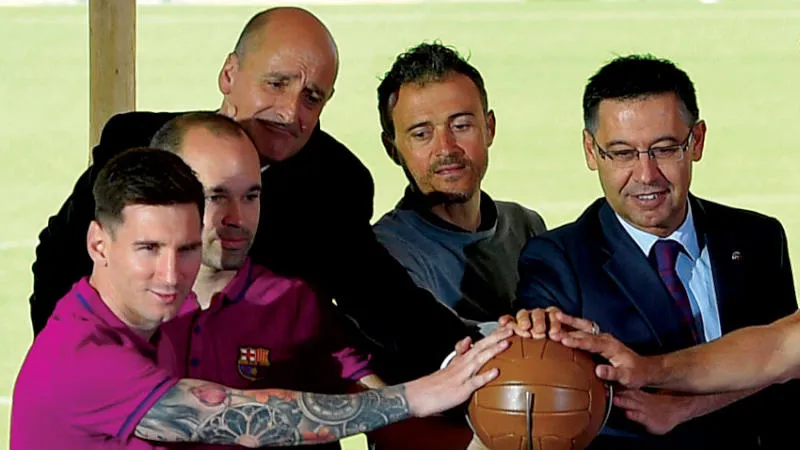 انسجام قبل أن تهب العاصفة... ميسي وبارتوميو وآخرون في النادي الكاتالوني (أ.ف.ب)