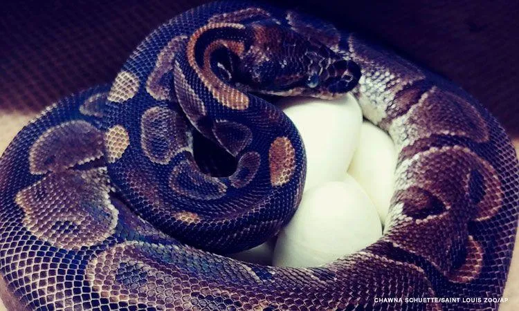 فوجئ حراس حديقة حيوان مدينة سانت لويس الأميركية برؤية أنثى ثعبان من نوع ثعابين الكرة، تضع مجموعة من البيض رغم أنها لم تكن تعيش بالقرب من ثعبان ذكر منذ أكثر من 15 عاماً.