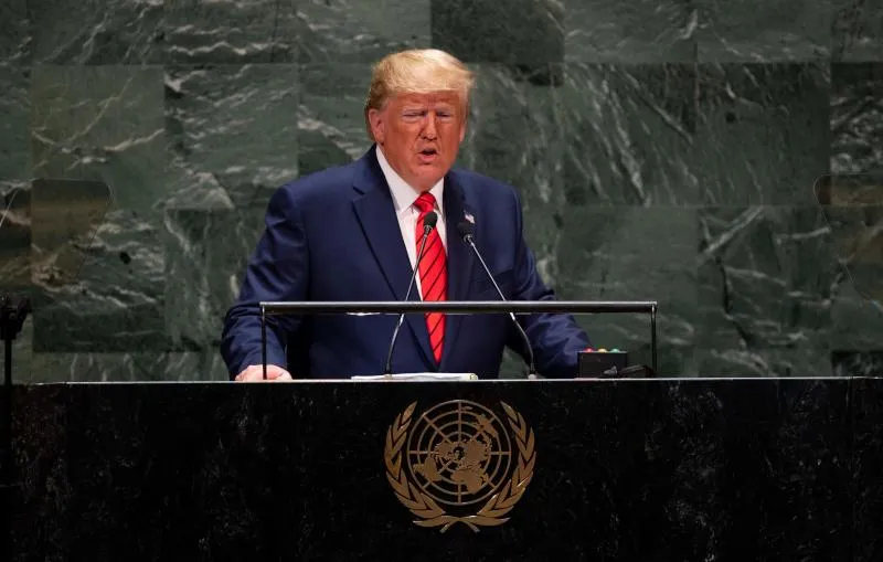الرئيس الأميركي دونالد ترمب يلقي خطاباً بمقر الجمعية العامة للأمم المتحدة في نيويورك العام الماضي (أ.ف.ب)