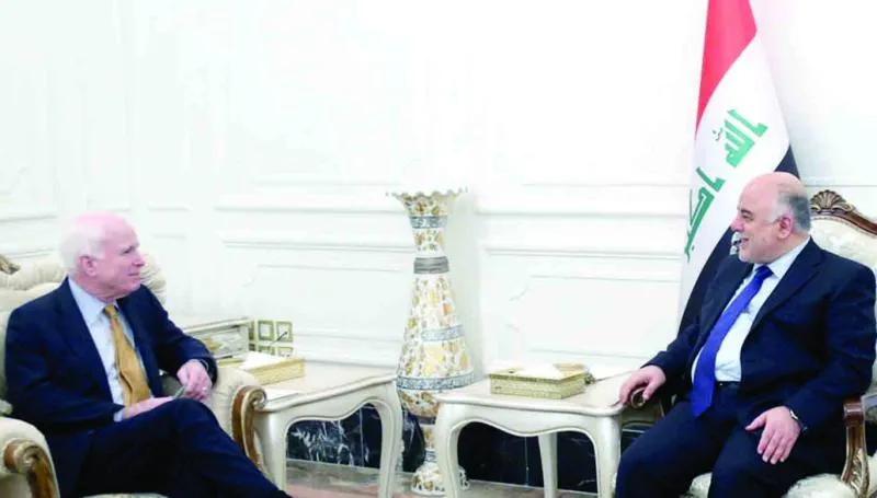 صورة من موقع رئاسة الوزراء العراقية لرئيس الوزراء حيدر العبادي خلال استقباله السناتور الأميركي جون ماكين أمس
