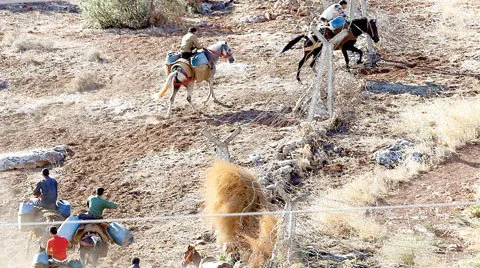مهربون أثناء اختراقهم للحدود التركية - السورية أمس (أ.ب)