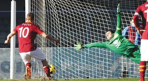 توتي قائد روما يسجل من ركلة الجزاء في شباك فيرونا (أ.ب)