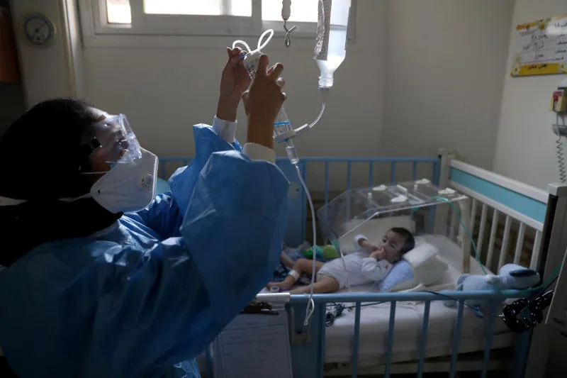 ممرضة تتابع حالة طفل مصاب بفيروس «كورونا» في مستشفى بطهران (رويترز)