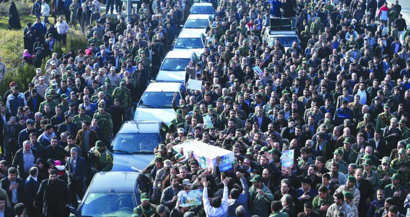 جانب من جنازة الضابط الإيراني العميد حميد تقوي الذي قتل بسامراء في طهران أمس (أ.ب)