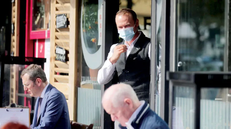نادل ألماني يرتدي كمامة تقيداً بتدابير الوقاية من «كورونا» في برلين الخميس (رويترز)