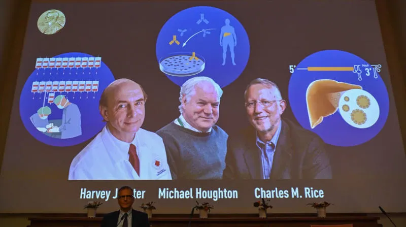في أوج تفشي جائحة «كوفيد – 19»، مُنحت جائزة نوبل للطب أمس إلى ثلاثة علماء فيروسات، هم البريطاني مايكل هوتن، والأميركيان هارفي ألتر وتشارلز رايس؛ تقديراً لدورهم في اكتشاف الفيروس المسؤول عن التهاب الكبد «سي».