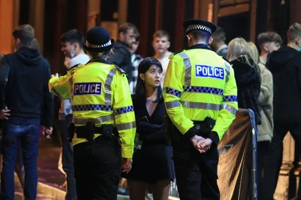 دورية للشرطة البريطانية وسط ليفربول قبل فرض إجراءات جديدة لوقف انتشار كورونا (ا.ف.ب)