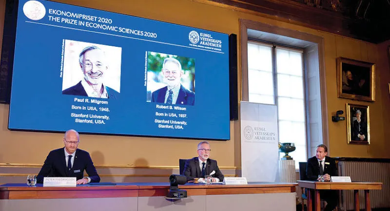 فاز الأميركيان بول ميلغروم وروبرت ويلسون، بجائزة نوبل للاقتصاد عن عملهما في تطوير نظرية المزادات التجارية وابتكار أشكال جديدة لتنظيمها.