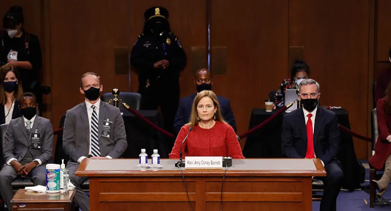 وفي ظل تخوف هؤلاء من عدم تأكيد ترمب بأنه سيعترف بنتائج الانتخابات ويسلّم السلطة بشكل سلمي، تزايدت الترجيحات بأن يُحسم السباق في المحكمة العليا. وسعى الديمقراطيون من أعضاء اللجنة القضائية المعنية بالمصادقة على باريت إلى تسليط الضوء على هذه القضية، فكرّسوا جزءاً كبيراً من أسئلتهم في اليوم الأخير من مساءلة باريت لفهم موقفها من القضية، فسألها كوري بوكر، وهو مرشح سابق للرئاسة عن الحزب الديمقراطي «هل تعتقدين أن كل رئيس يجب أن يتعهد من دون أدنى تردد بالانتقال السلمي للسلطة؟». باريت تمكنت وبمهارة فائقة من التهرب من الإجابة بشكل مباشر، فردّت عليه قائلة «حضرة السيناتور، يبدو لي أنك تحاول جرّي إلى اتخاذ موقف حيال ما قاله الرئيس بأنه لن يسلّم السلطة بشكل سلمي. لهذا؛ وبما أن الأمر يشكل حالياً مصدر تجاذب سياسي، أريد أن أبقى خارج هذا التجاذب بصفتي قاضية». ولم يكن هذا السؤال الوحيد الذي تجنبت باريت الإجابة عنه، فقد رفضت كلياً الإجابة عن أسئلة متعلقة بصلاحيات الرئيس بإصدار عفو عن نفسه يضمن عدم محاكمته بعد مغادرته البيت الأبيض، وهو سيناريو آخر يعتقد الديمقراطيون بحصوله. وعلى الرغم من أن الديمقراطيين حاولوا جاهدين عدم مهاجمة باريت بشكل شخصي، لتجنب مشهد مماثل لجلسات المصادقة على القاضي برت كفناه التي كلّفت عضوين في مجلس الشيوخ مقاعدهما في الانتخابات التشريعية، فإنهم أشاروا في أكثر من مناسبة إلى تلويح ترمب بأنه سعى إلى تعيين باريت بأسرع وقت ممكن قبل الانتخابات في حال اضطرت المحكمة العليا إلى التدخل وحسم النتائج. وقال السيناتور الديمقراطي كريس كونز «إنه (ترمب) يحاول الاستعجال في المصادقة كي تصوتي لصالحه في حال حصول خلاف على الانتخابات، وهو يبذل جهده للتشكيك في مصداقية انتخابات أدلى فيها الملايين بأصواتهم، أغلبيتهم عبر البريد».