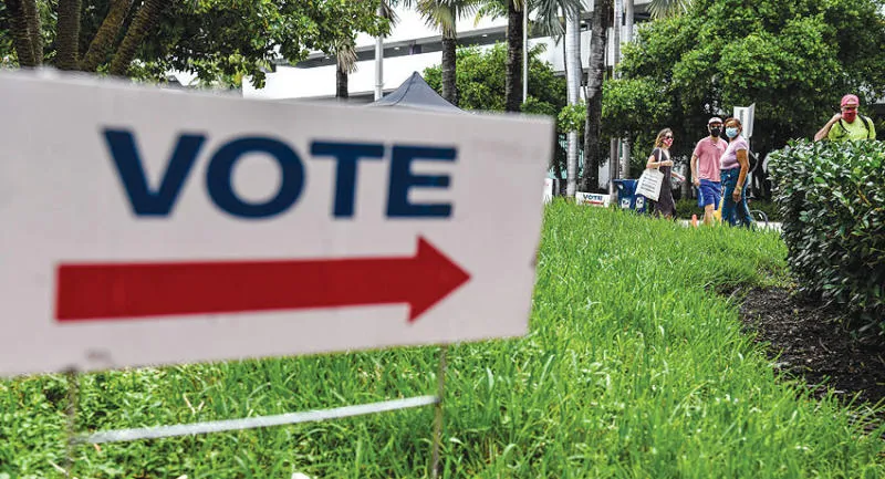 ناخبون يتوجهون للإدلاء بأصواتهم في أحد المراكز في ميامي بفلوريدا أمس (أ.ف.ب)