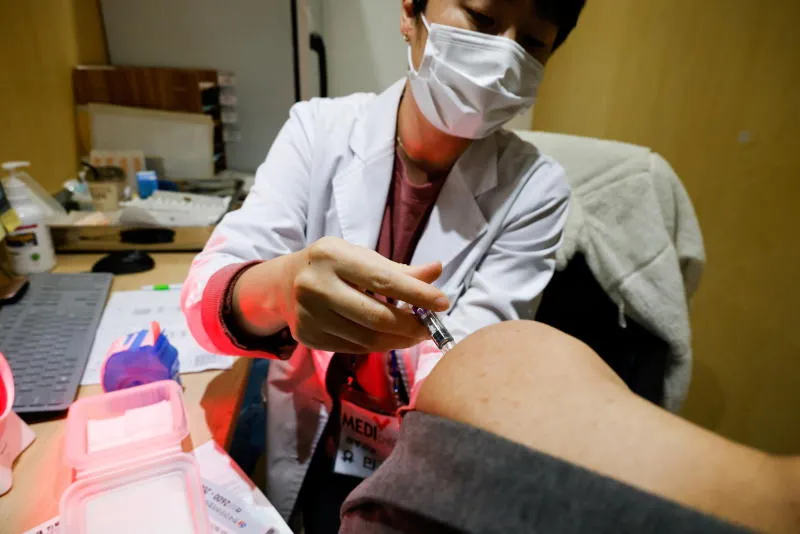 رجل يحصل على جرعة لقاح الإنفلونزا في كوريا الجنوبية (رويترز)