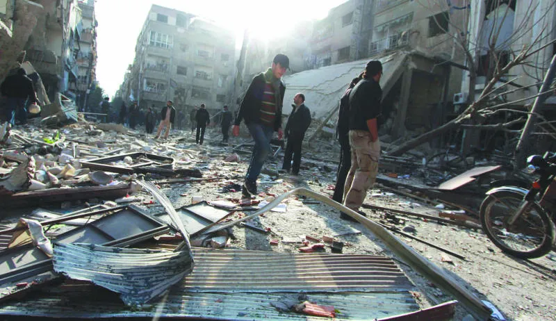 حي دوما بريف دمشق الشرقي المبتلي بقصف طيران النظام وغياب الكهرباء والوقود والحصار الغذائي وزاد عليه صراع المعارضة (رويترز)