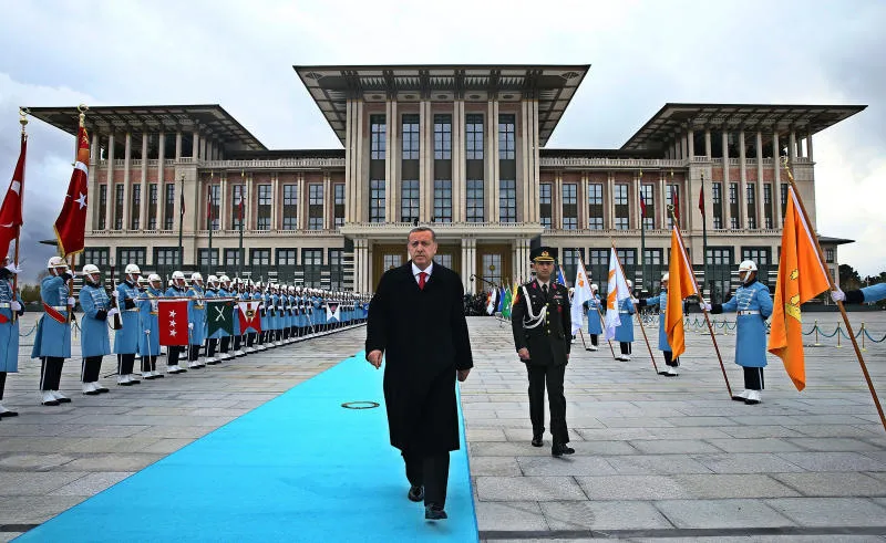 إردوغان في قصره المثير للجدل الذي كلف مليارات الدولارات ويحتوي على اكثر من 1000 غرفة يتهيأ لاستقبال الرئيس الروسي فلاديمير بوتين في الاول من ديسمبر (غيتي)