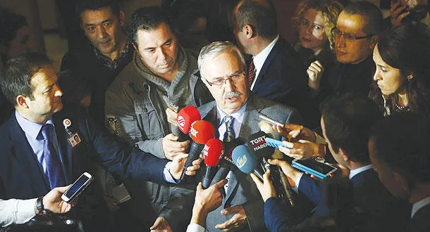 النائب عن حزب العدالة والتنمية الحاكم في تركيا حقي كويلو يتحدث للصحافيين أمس بعد تصويت لجنة برلمانية يترأسها ضد إحالة أربعة وزراء سابقين إلى المحاكمة بشبهة الفساد (أ.ف.ب)