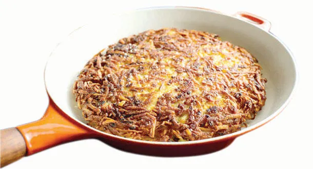 1. قم ببشر البطاطس والبصل باليد أو عن طريق المفرمة الإلكترونية، ويتم تصفيته باستخدام مصفاة. يوضع كل من البطاطس والبصل معا في وعاء كبير ويضاف البيض والملح والفلفل وفتات الخبز.