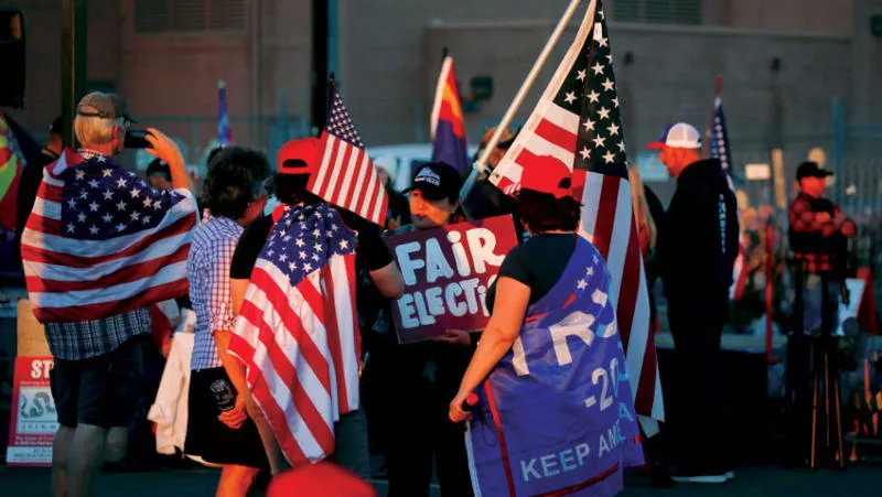 مؤيدون للرئيس الأميركي يطالبون بــ{وقف سرقة الانتخابات» في فينيكس الأربعاء (رويترز)