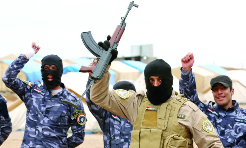عناصر في القوات الخاصة العراقية يتدربون أمس إلى الشمال من الموصل استعدادا لتحرير المدينة من سيطرة «داعش» (أ.ف.ب)