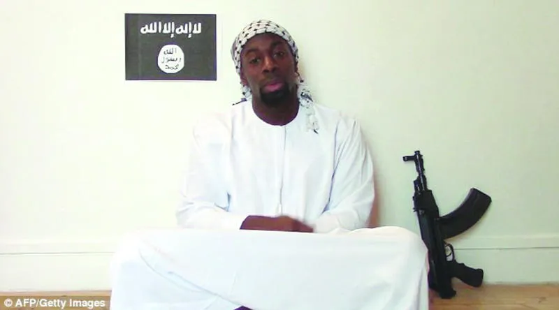كوليبالي في شريط مبايعته للبغدادي زعيم «داعش» («الشرق الأوسط»)