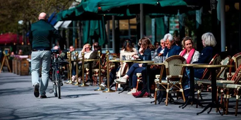 أشخاص يجلسون في مطعم بالسويد دون كمامات أو تباعد في ظل تفشي فيروس كورونا المستجد (أ.ف.ب)