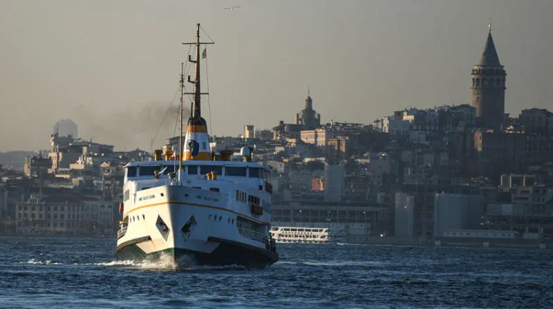باخرة تعبر مضيق البوسفور في اتجاه الجزء الآسيوي من إسطنبول أمس (أ.ف.ب)