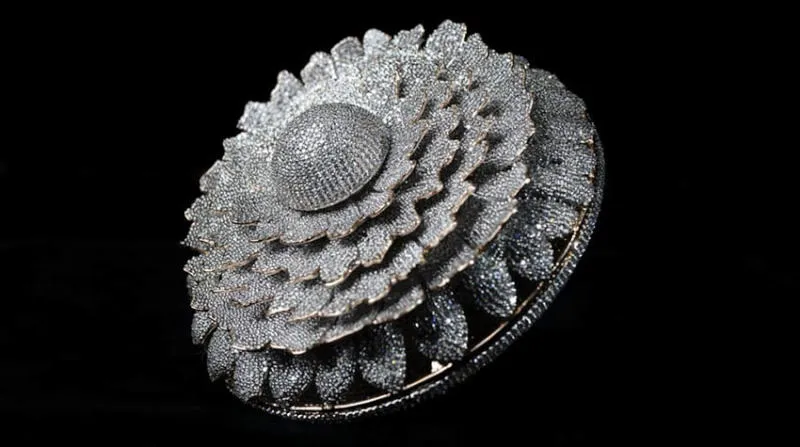 دخل خاتم على شكل زهرة مرصع بأكثر من 12 ألف ماسة إلى موسوعة «غينيس» للأرقام القياسية؛ لكن صانع هذه الجوهرة وهو صائغ هندي في الخامسة والعشرين من العمر، فخور به لدرجة رفض طرحه للبيع.