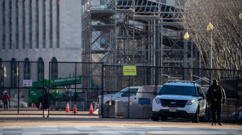 إعداد منصة تنصيب الرئيس الأميركي الجديد قرب بنسلفانيا أفنيو بالعاصمة الأميركية (إ.ب.أ)
