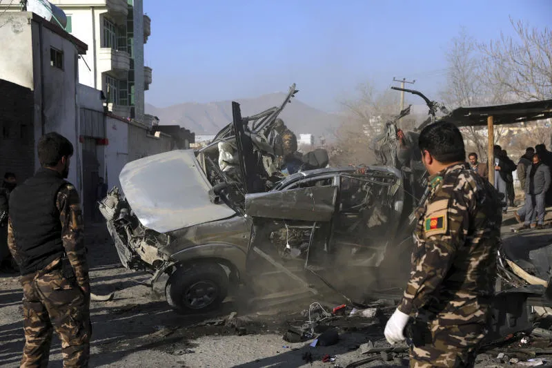 رجال أمن أفغان يتفقدون موقع هجوم سابق نفّذته حركة «طالبان» (أرشيفية - أ.ب)