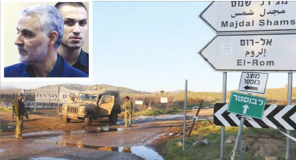 قوات إسرائيلية في الجانب المحتل من هضبة الجولان السورية أمس بالقرب من القنيطرة حيث تمت الغارة العسكرية (إ.ف.ب) وصورة أرشيفية لجهاد عماد مغنية مع قائد فيلق القدس قاسم سليماني في طهران بثتها وكالة فارس الإيرانية