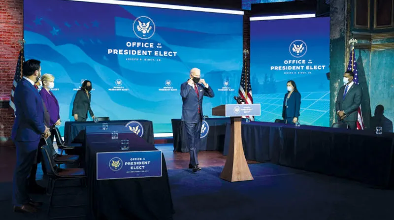 قدم الرئيس الأميركي المنتخب جو بايدن فريقه الحكومي الخاص بالمناخ والمسؤولين عن وضع الخطة الأكثر طموحاً في تاريخ الولايات المتحدة لمكافحة الاحتباس الحراري، والتي تتضمن الوصول إلى صافي انبعاثات صفرية بحلول عام 2050، وإنشاء قطاع طاقة محايد للكربون بحلول عام 2035.