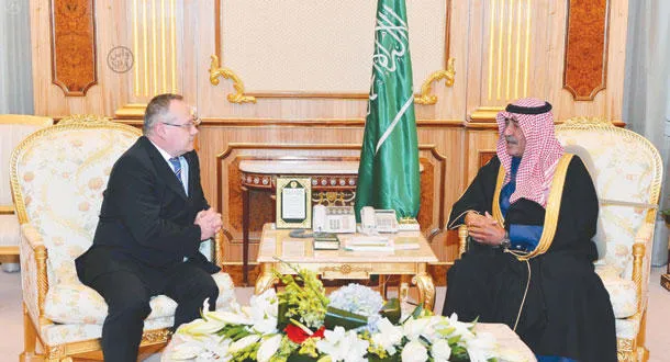 الأمير مقرن بن عبد العزيز لدى لقائه السفير المجري المعين حديثا لدى السعودية (واس)