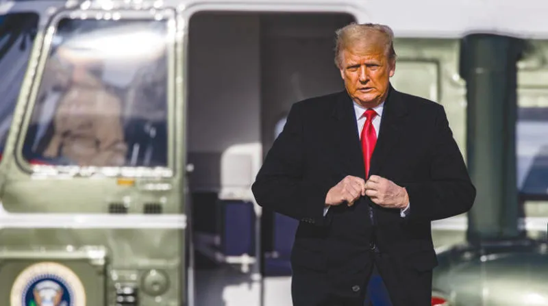 ترمب يستعد للصعود على متن طائرة الرئاسة بقاعدة «آندروز» بولاية ميريلاند في 12 ديسمبر الحالي (نيويورك تايمز)