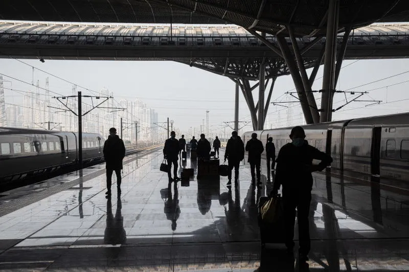 ركاب في محطة للقطارات في مدينة ووهان الصينية (إ.ب.أ)