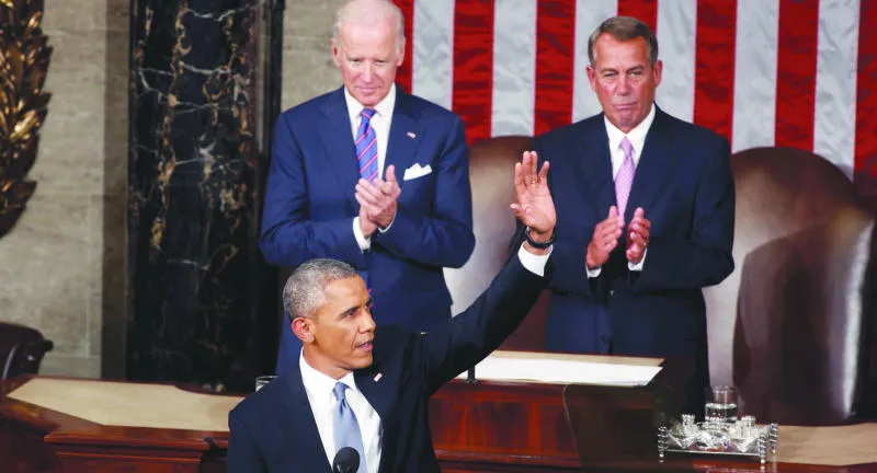تعهد الرئيس الأميركي باراك أوباما في خطابه السنوي عن حالة الاتحاد الليلة قبل الماضية، أمام الكونغرس بغرفتيه، بكسب التحالف الدولي ضد الإرهاب لمعركته ضد تنظيم داعش وإن أقر أن ذلك سيستغرق بعض الوقت، كما وعد بمساندة المعارضة السورية المعتدلة، ومنع إيران من امتلاك سلاح نووي من خلال استخدام دبلوماسية التفاوض للتوصل إلى صفقة تقلل من طموحات إيران النووية.