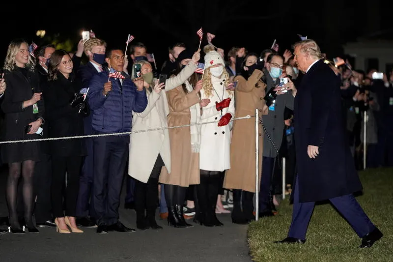 الرئيس الأميركي دونالد ترمب يحيي مجموعة من أنصاره في واشنطن (رويترز)