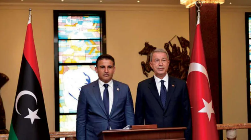وزير دفاع «الوفاق» النمروش لدى اجتماعه مع وزير الدفاع التركي في إسطنبول (حكومة الوفاق)