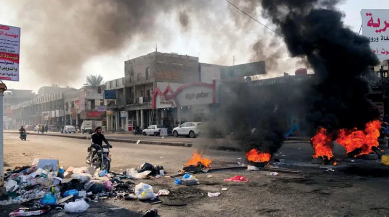 ناشطون أغلقوا بإطارات مشتعلة شارعاً في الناصرية أمس (شبكة أخبار الناصرية)