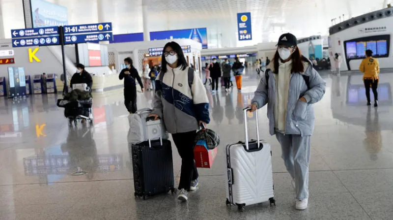 مسافرون في مطار ووهان مطلع يناير الحالي (رويترز)